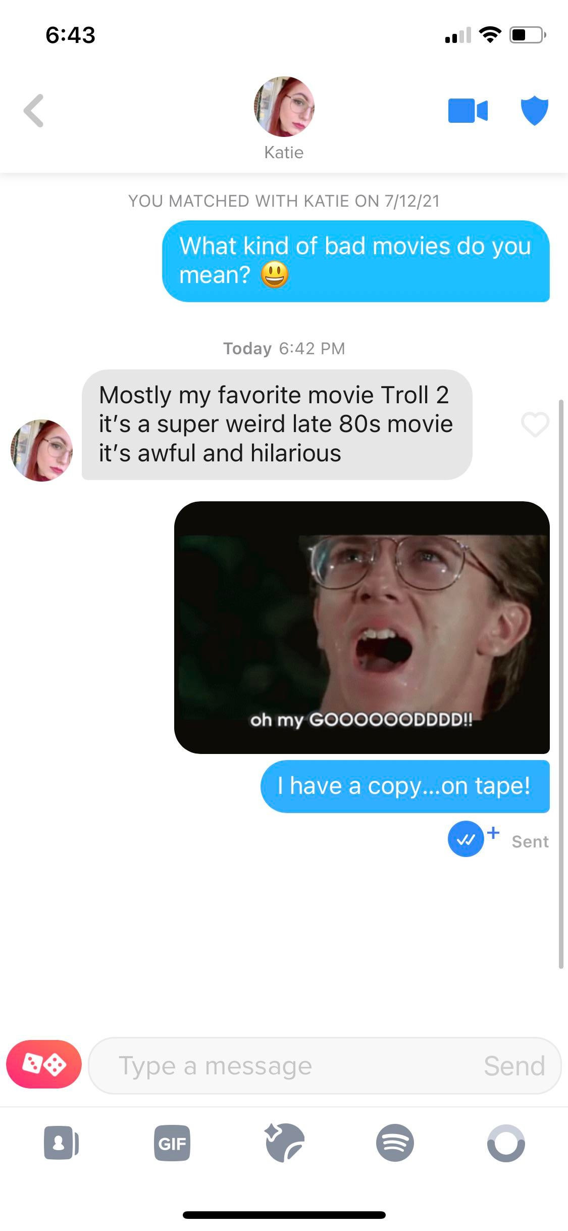 Tinder : Had a really bad day and caved and bought platinum, matching on someone with super obscure interests literally paid for itself.