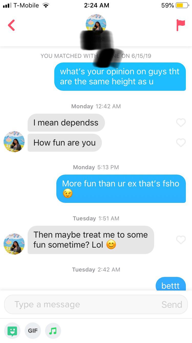 Tinder : Her bio said she was 5’8.. For y’all tryna aim high