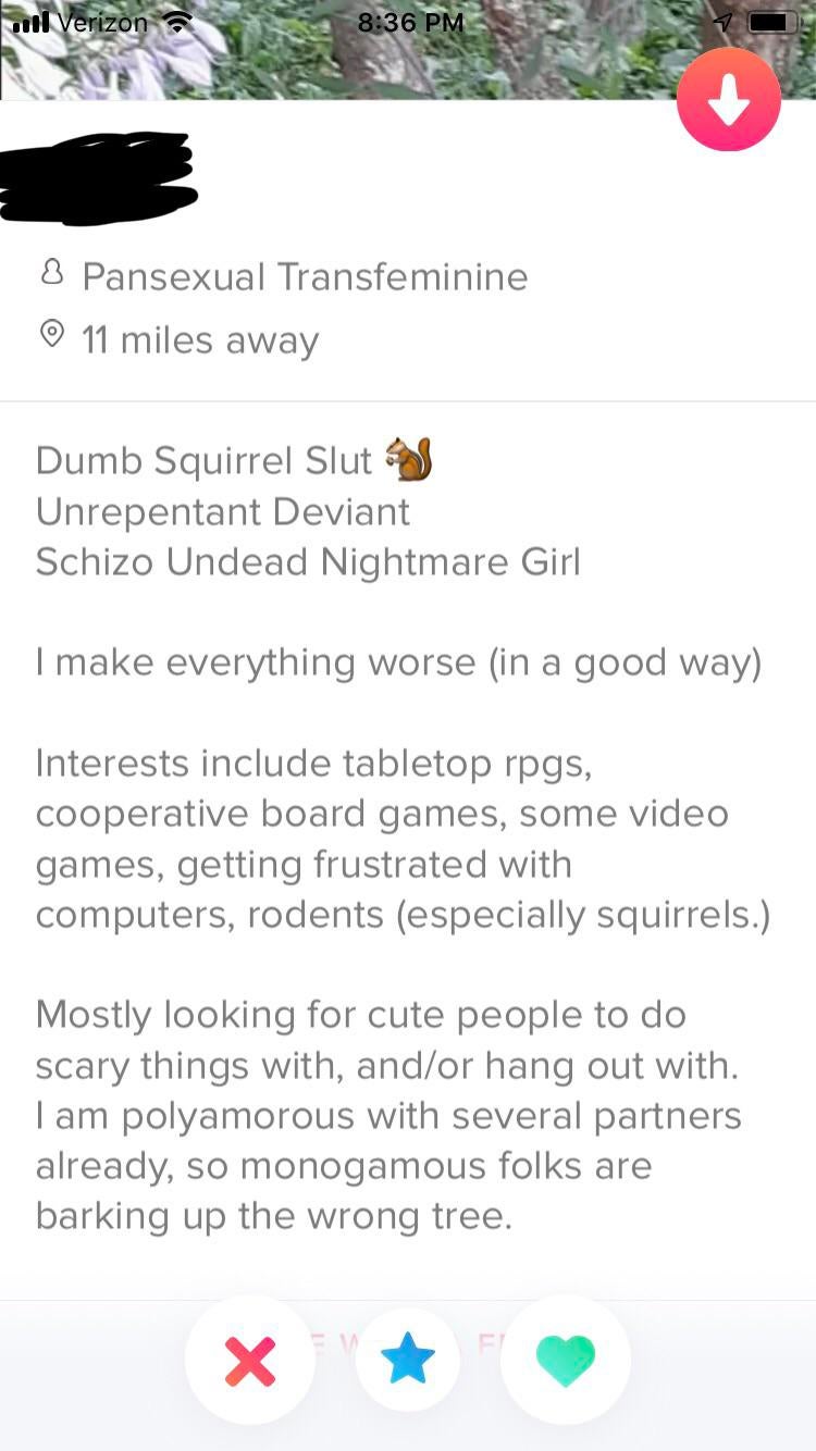 Tinder : I almost didn’t read the bio because the picture was just a squirrel, but I’m so glad I did