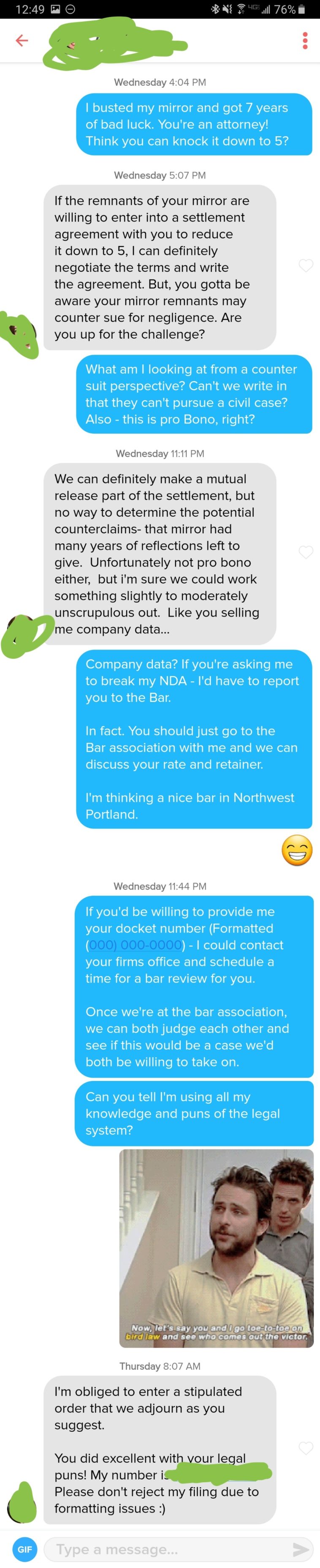 Tinder : I made quite the case. Hopefully I’m not counter-sued.