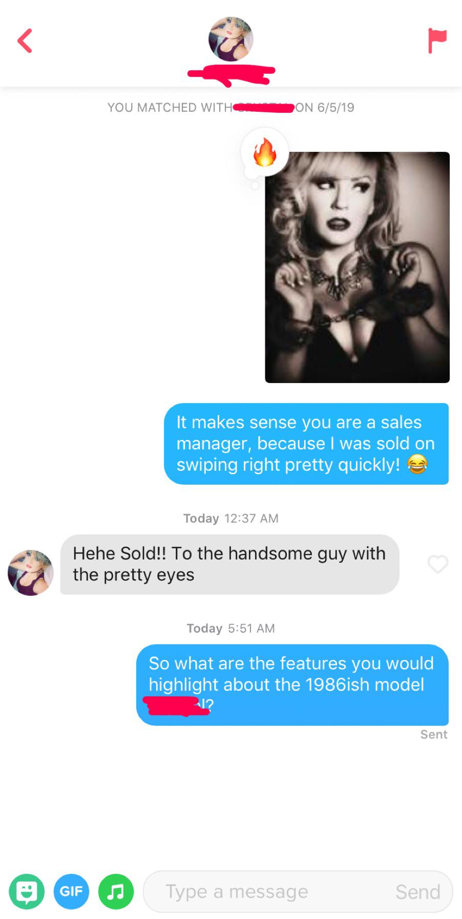 Tinder : Maybe this 1986 model car saleswoman will let me take a test drive.
