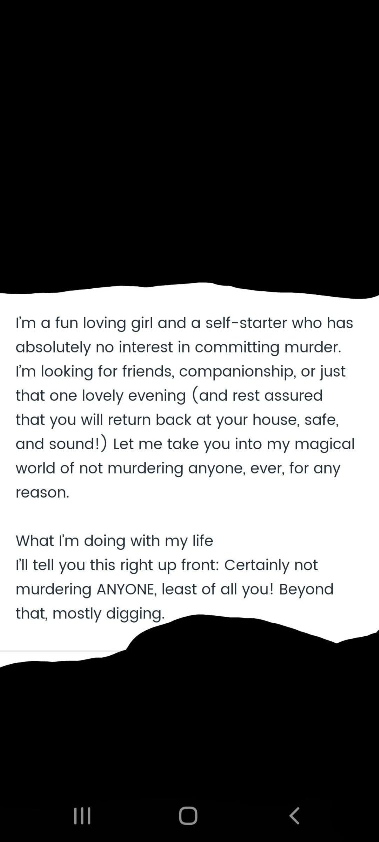 I mean, now I’m worried……of all the girls who didn’t say they weren’t murderers….