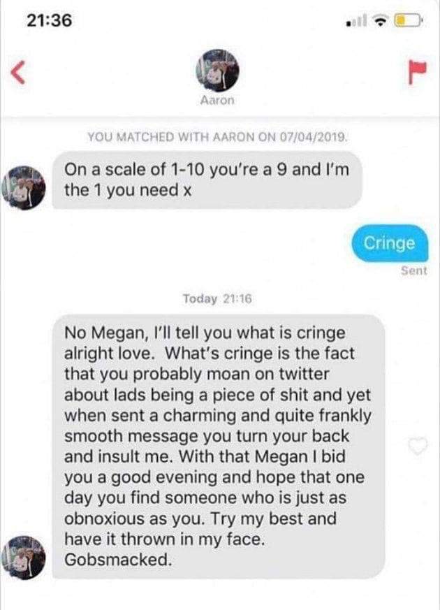 To be honest, that was a fun opener. Banter is important. That could have been worked with better. Next response a little bit tragic though… over and out to that one…
