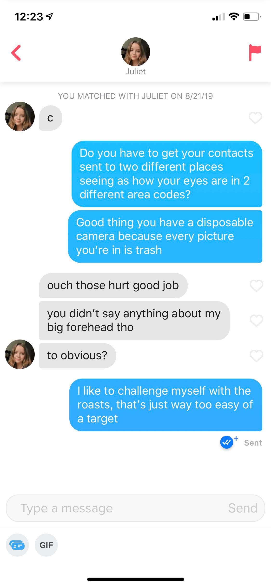 Tinder : Option C in my bio is roast. Did I do ok?