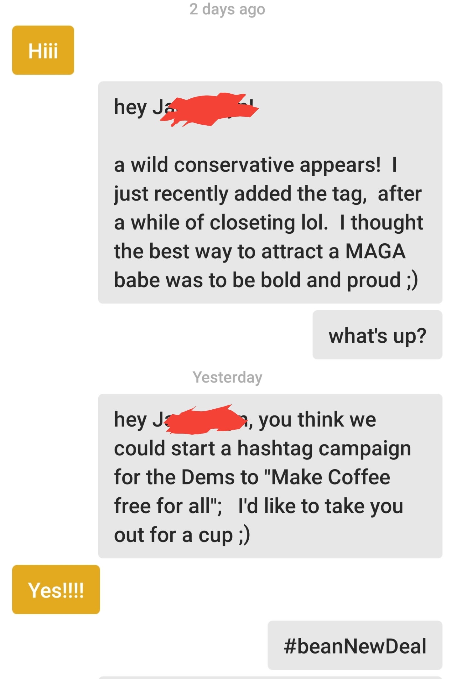 Tinder : Politics aside, I’m pretty happy with this line.