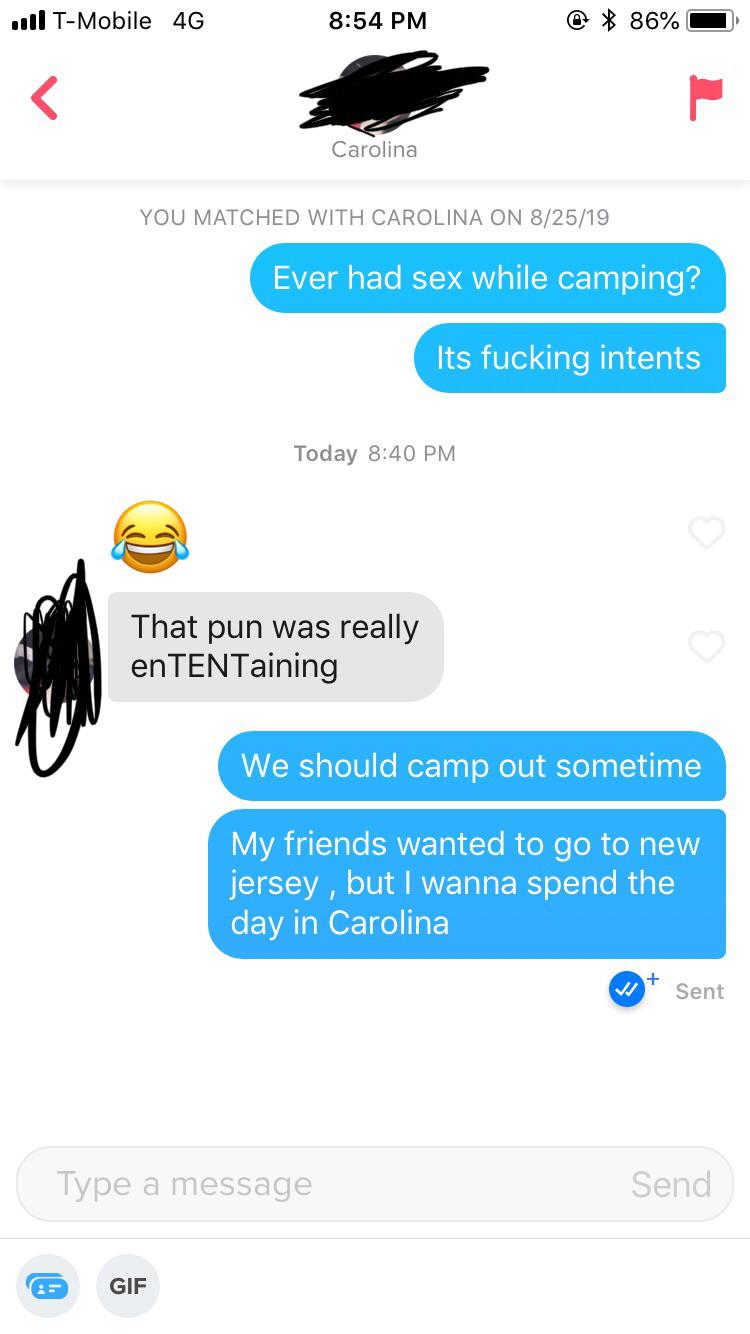 I hope she in*tent*ionally makes another tent joke.