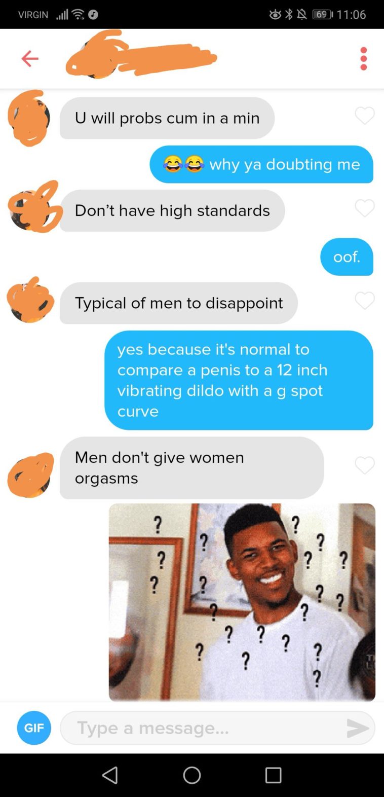 Tinder : She was only down to meet up if my penis was better than her dildo