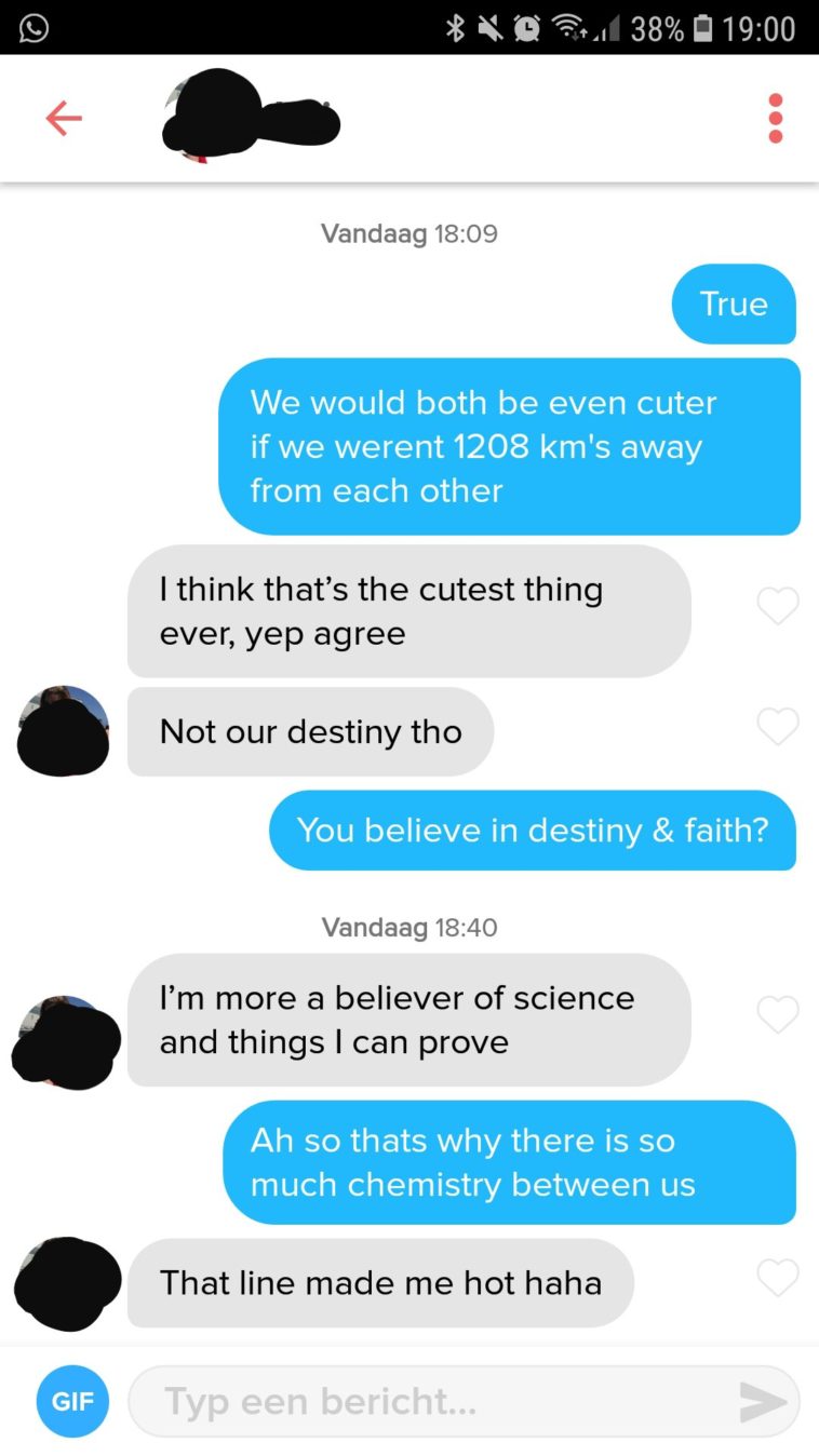 Tinder : Sometimes you need a pick up line halfway trough the conversation