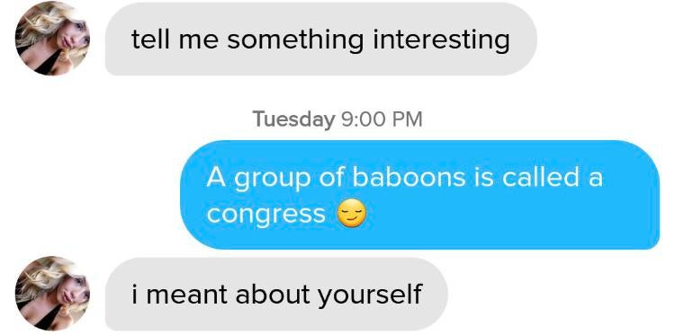 Respond with « I know what a group of baboons is called ».