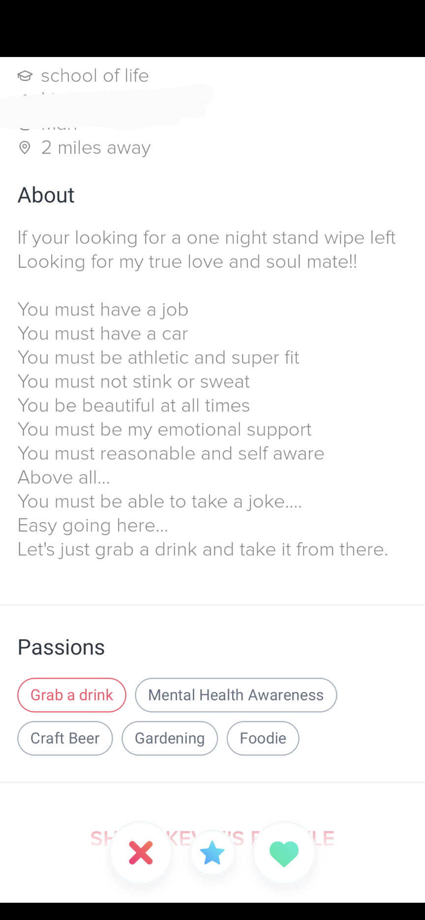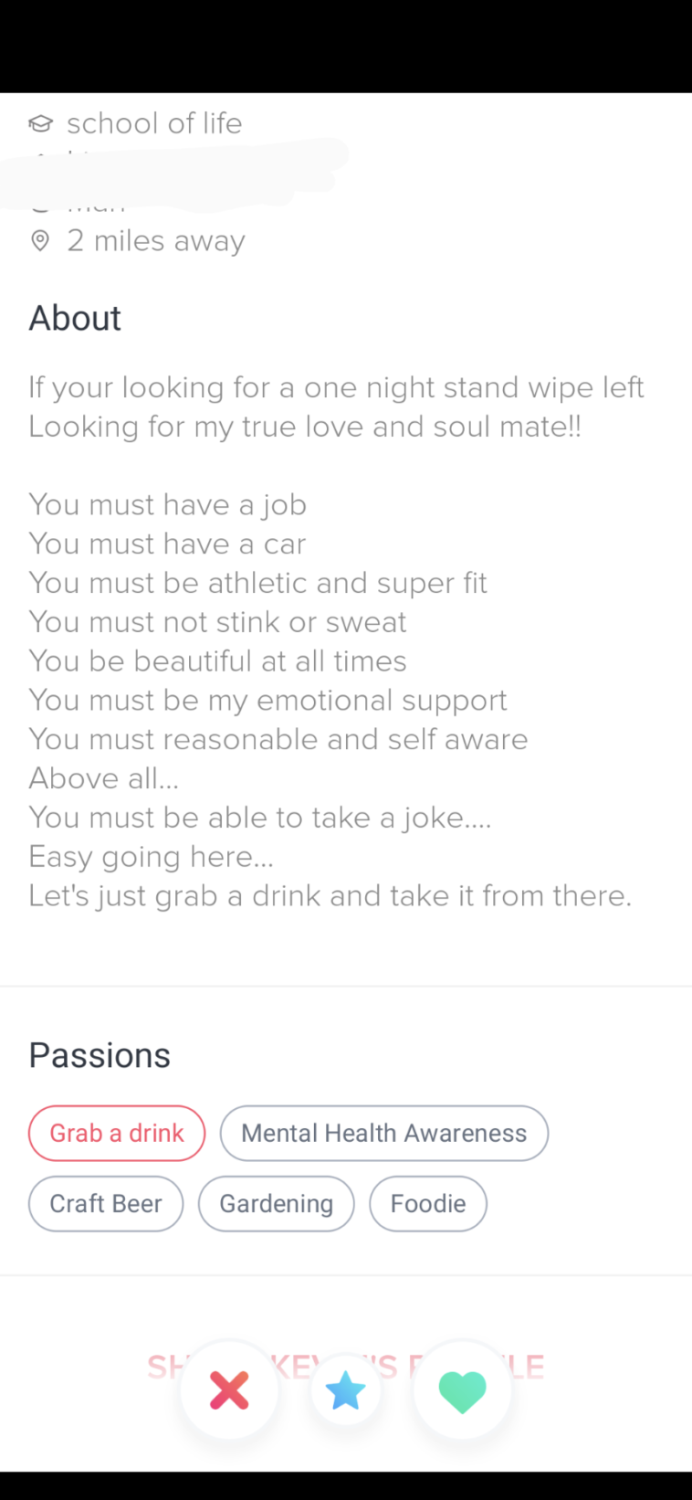This feels like a parody description of most women’s dating profiles tbh