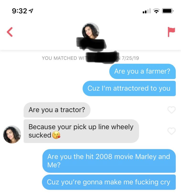 Her response should have been, are you a wheelbarrow? Because you wheely sucked