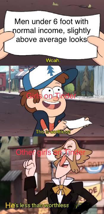Yeah… 6′ guy. Was on 8 different dating apps for a year. Deleted all my accounts. No matches. Worthless doesn’t even begin to describe how I feel.