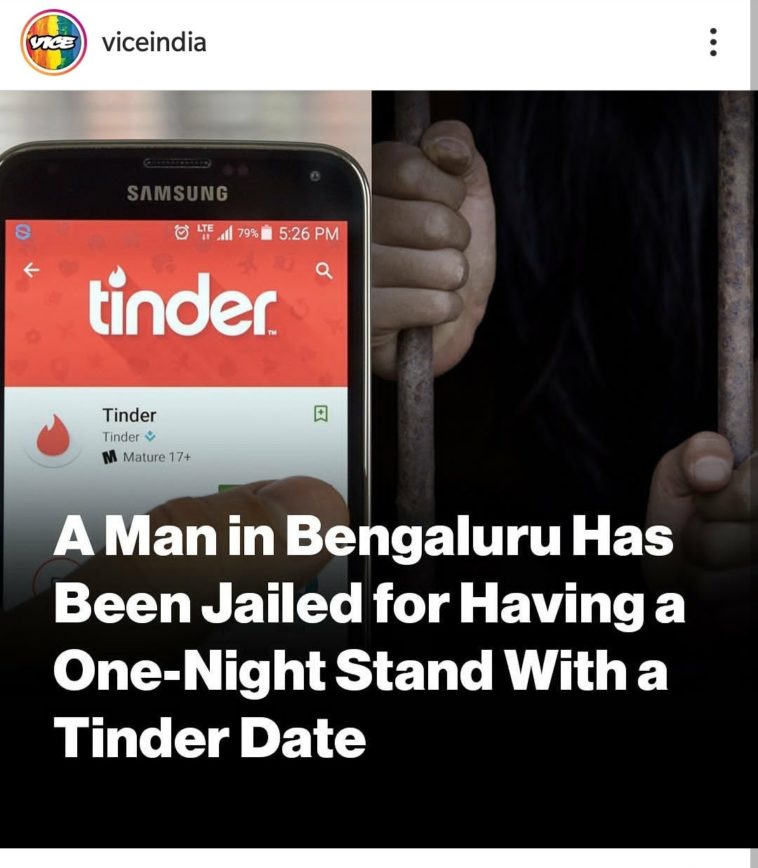 Edit: [link to article](https://www.vice.com/amp/en_in/article/ywykny/a-man-in-bengaluru-has-been-jailed-for-having-a-one-night-stand-with-a-tinder-date#referrer=https://www.google.com)
