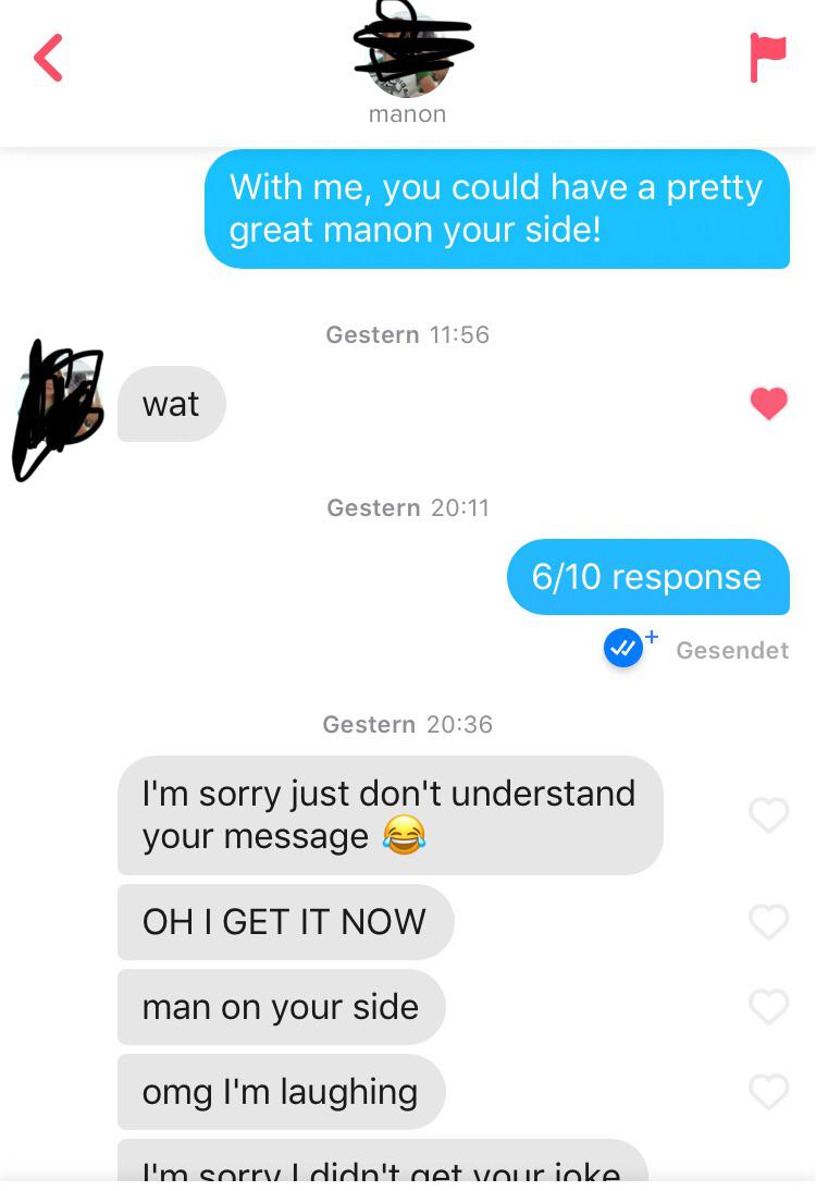 Just how badly does someone need to miss the joke to get one out of ten? That was a pretty high grade considering it went completely over her head, did an unexpected turn (it was a boomerang joke) and got her on the way back.