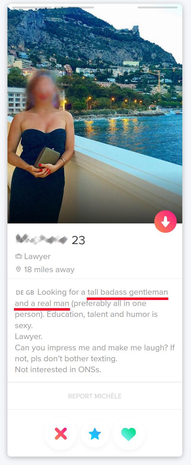 If you were in her position (newly graduated with a law degree and job) wouldn’t you have some standards/expectations?